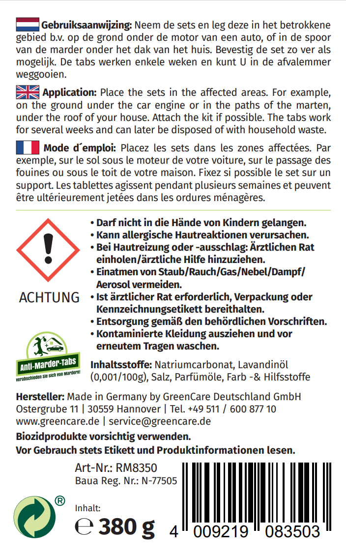 - Wirksam gegen Marder